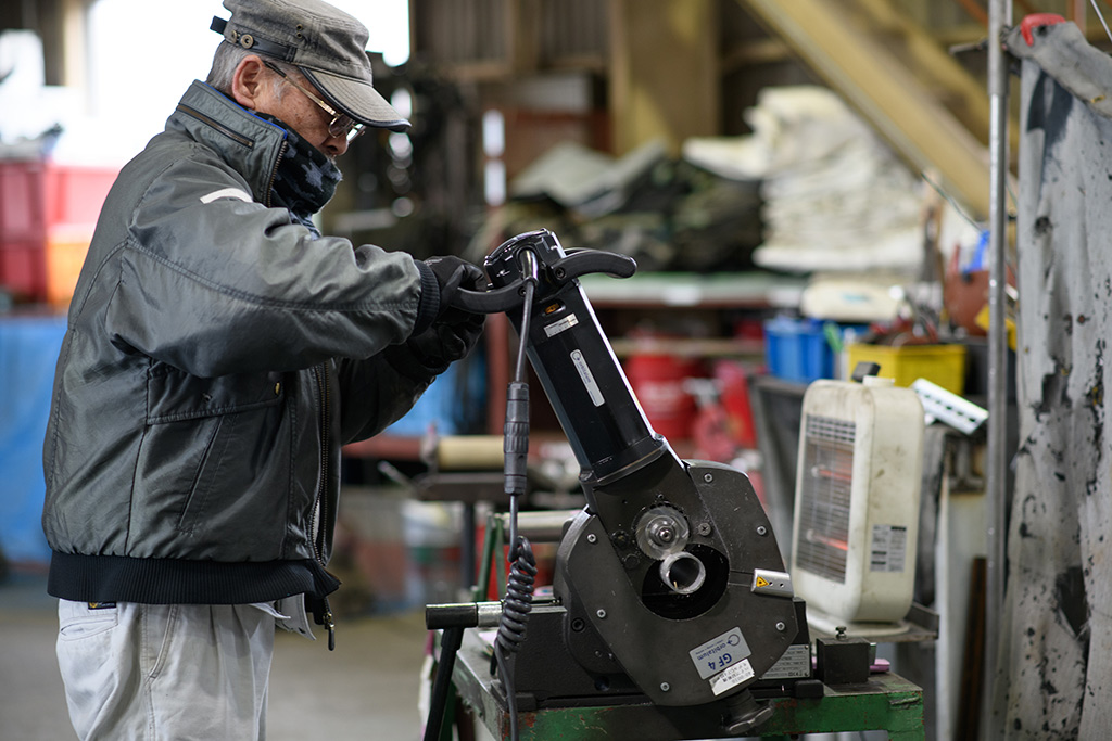 水や蒸気など多種多様な物体を運ぶプレハブ加工配管や、塔槽類・機械架台を工場内にて、工作機械と手仕事を組み合わせて製作します。
