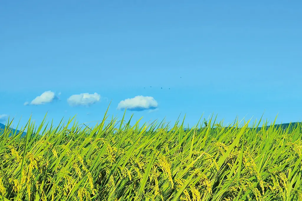 東近江市蒲生平野は、鈴鹿山脈から流れた日野川と佐久良川に囲まれ、綺麗で栄養豊富な水や土に育まれ、良質なお米が生産されています。